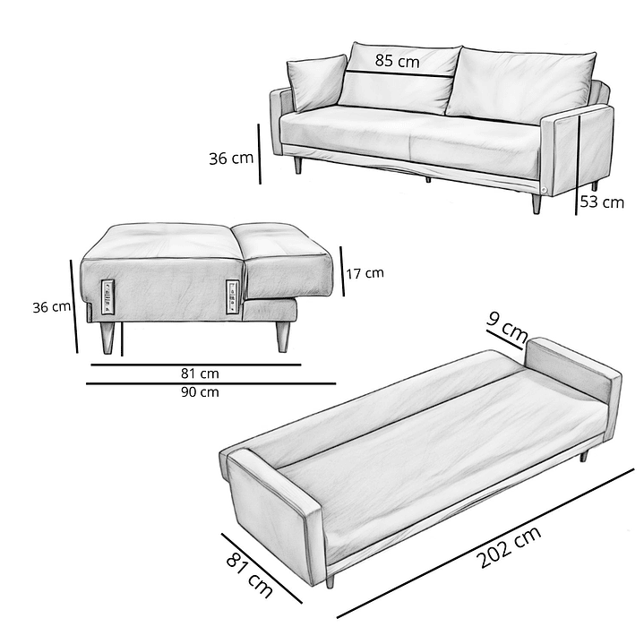 El increíble sofá cama Florida Marca Alaia Home, es la fusión perfecta entre lo vintage y lo moderno, su diseño recuerda a los años 60, pero con toda la comodidad de hoy en día. La modalidad click clack le permite un armado fácil y práctico. Su respaldo tiene dos funciones de inclinación, además de tumbada cuando se usa como cama.
